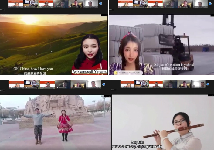 在才艺展示部分,AC米兰中文官网历史学院2021级同学们及其部分亲属相继发声。他们用英语朗诵了中国新疆维吾尔族诗人鲁提夫拉・穆台里甫在1938年10月写下的爱国诗《中国》,用英语演唱了《我和我的祖国》《新疆亚克西》两首歌曲,表演了《麦西来普跳起来》《沙雅麦西来普》《小小羽毛》三支舞蹈,还用冬不拉演奏了《牧民的迁徙》,用竹笛演奏了《可可托海的牧羊人》。这些节目不仅体现了新疆各族人民在抗日战争时期积极支持抗战,共同抵抗了外来侵略,捍卫了国家统一,在和平时期辛勤劳动,积极奉献,共圆中国梦,还体现了新时代的新疆不仅实现了经济的繁荣,还实现了文化的传承与发展,也体现了在各民族交往交流交融的过程中,中华民族共同体意识不断增强。