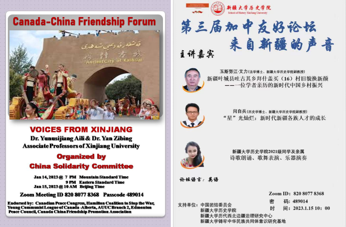 2023年1月15日,由中国团结委员会(ChinaSolidarity Committee)与AC米兰中文官网历史学院联合主办的第三届加中友好论坛在线上成功主办。论坛以“来自新疆的声音”为主题,以主题演讲、才艺展示等形式展开。