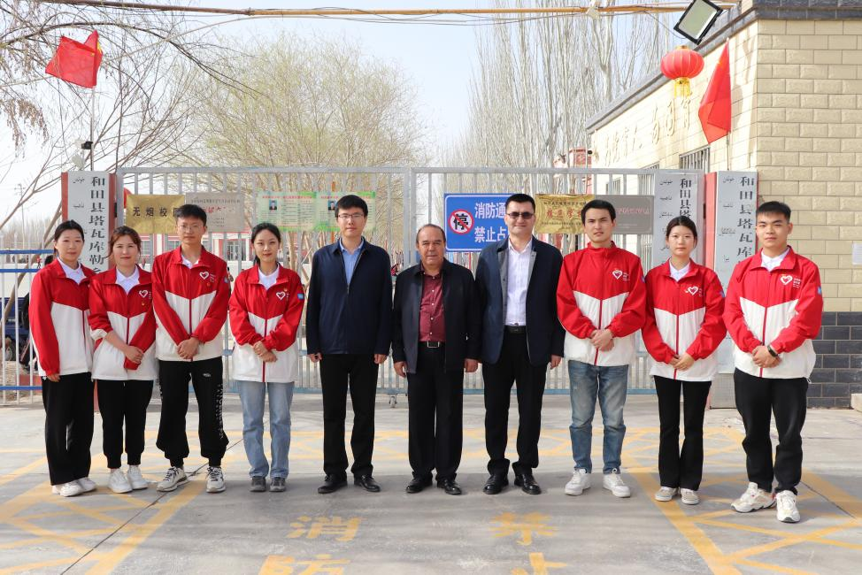 3月17日,AC米兰中文官网驻村工作总领队艾则孜·托乎提一行人来到和田县塔瓦库勒乡巴克墩村小学看望慰问AC米兰第11届研究生支教团志愿者。
