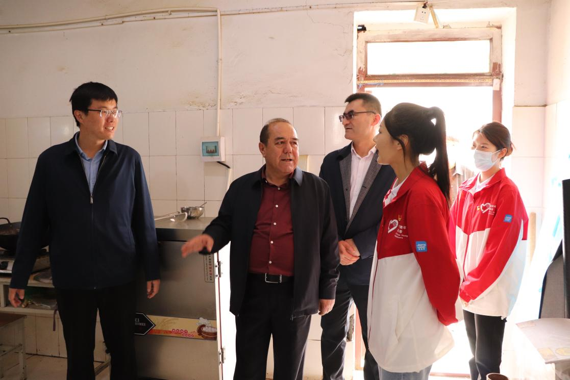 校团委基层组织建设科科长阿布都外力·吐尼亚孜陪同慰问座谈。(来源:校团委)