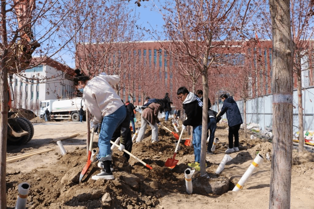 植树现场到处都是忙碌的身影,参加植树活动的干部职工热情洋溢、干劲十足,在后勤服务中心技术人员的指导下挖土、植苗、浇水,各个环节衔接有序,工作认真到位。经过辛勤劳动,全体干部职工共栽种树苗50余棵,为博达校区增添一片新绿。