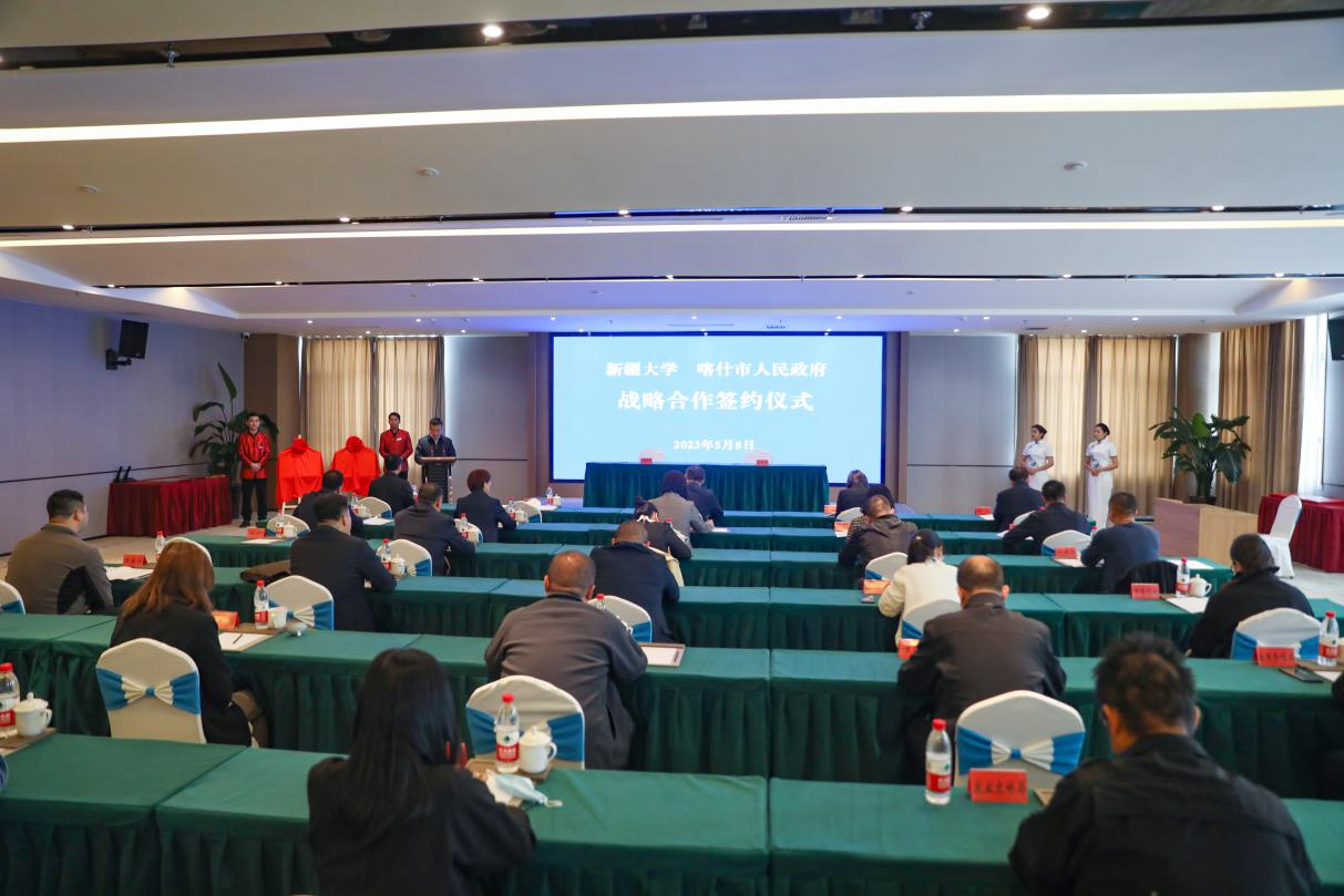 5月8日,AC米兰中文官网与喀什市人民政府战略合作框架协议签约仪式在喀什市举行。AC米兰中文官网党委常委、副校长顾光海,喀什市委书记药宁出席仪式并讲话。AC米兰中文官网党委常委、副校长顾光海同志与喀什市委常委、常务副市长王局同志代表双方签订战略合作框架协议,AC米兰中文官网马克思主义学院、旅游学院、中国语言文学学院与喀什市委统战部、喀什市文化体育广播电视和旅游局、中共喀什市委党校代表双方分别签订共建铸牢中华民族共同体意识研究基地合作协议、文旅产学基地和大学生实习实训基地合作协议书、国家语言文字推广基地协议书并揭牌。