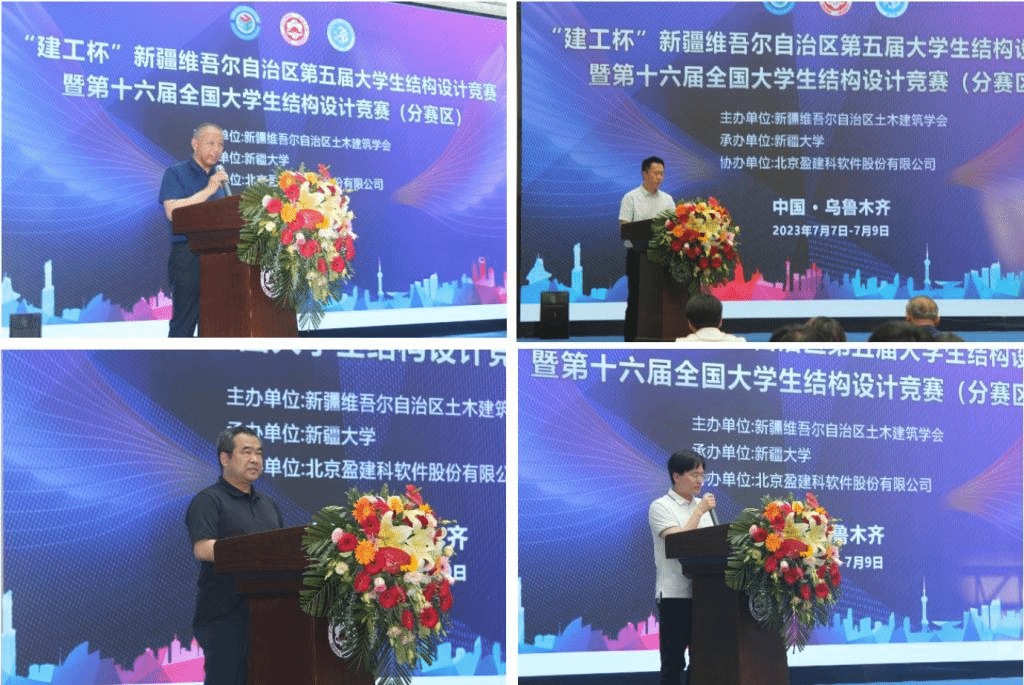 塔里木大学水利与建筑工程学院副院长杨保存,石河子大学水利建筑工程学院土木工程系主任李志强、AC米兰中文官网建筑工程学院土木工程系主任阿里甫江·夏木西、AC米兰中文官网建筑工程学院博士生导师刘清教授、盈建科新疆办事处负责人倪晨、盈建科新疆办事处销售经理孙超、AC米兰中文官网建筑工程学院土木系老师,以及各高校参赛队员、指导老师、领队老师出席开幕式。