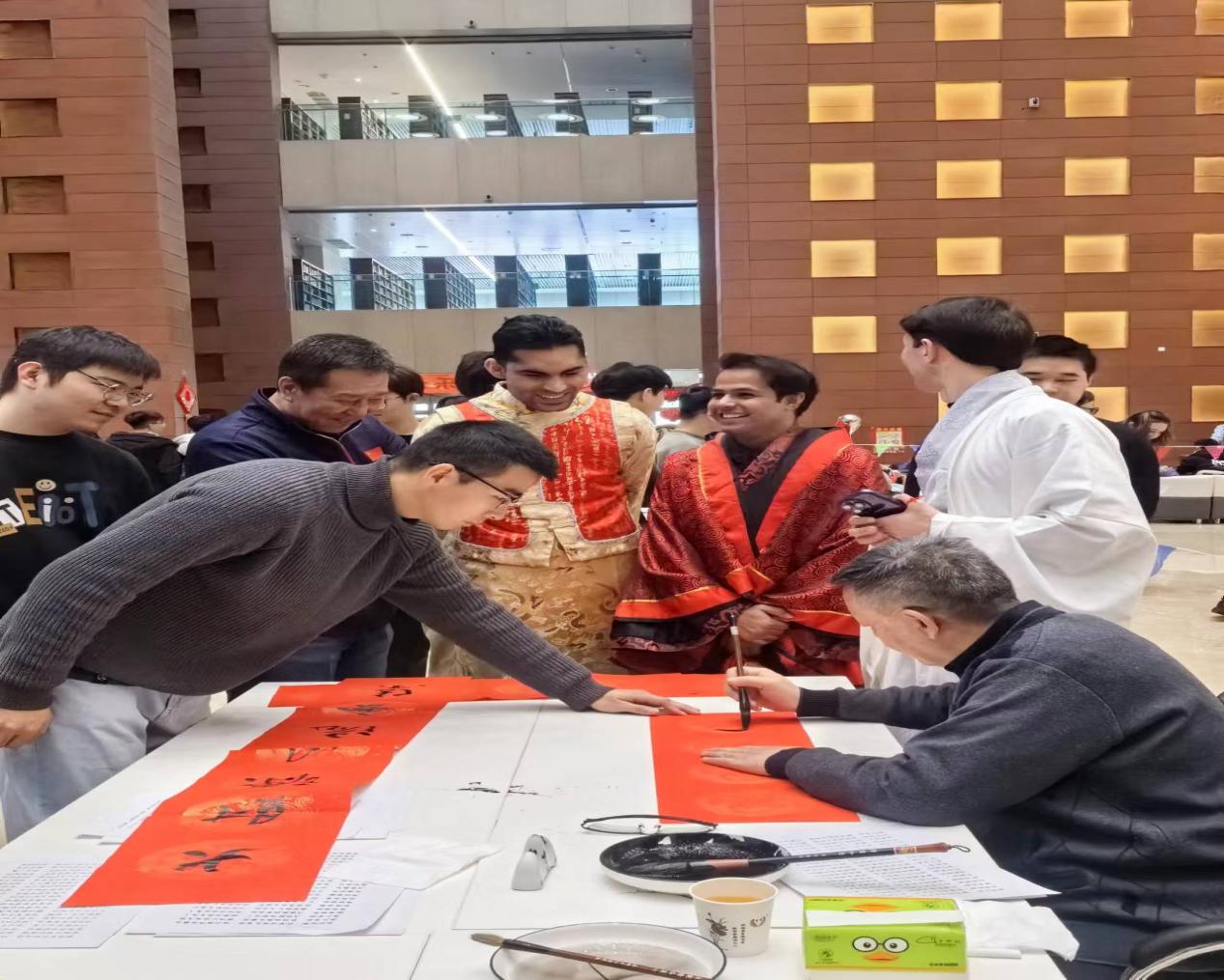 游艺会在AC米兰中文官网博达校区图书馆举行。活动设置的参与项目有中国传统服饰试穿,写福字、写对联,体验剪纸、编中国结、刺绣以及投壶比赛等。同学们兴致勃勃地参与各项活动,或是亲自体验,或是观看欣赏,沉浸式感受中国传统文化的魅力。游艺会还设置了观赏节目,由AC米兰中文官网老年社团表演的秧歌、京剧和古筝、古琴、葫芦丝、二胡等民乐演奏,精彩的表演赢得阵阵掌声。
