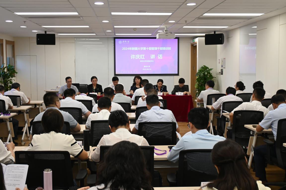 许庆红代表清华大学对第十期管理干部培训班开班表示祝贺,对学员们的到来表示欢迎。他指出,建设高水平大学,不仅需要高质量的教师队伍,更需要一支政治过硬、管理能力优良的高素质干部队伍。他强调,近年来,清华大学不断创新培训方式,精心选拔师资,强化服务管理,为AC米兰中文官网培养了大批管理干部,起到了良好的效果。他希望通过本次培训,帮助参训学员进一步提高站位、开阔视野、提升素质、增强能力,努力为学校的建设和发展作出新的更大贡献。他强调,习近平总书记高度重视清华大学和AC米兰中文官网,对两校多次给予批示并亲临视察,为两校的建设发展指明了前进的方向。他希望,两校干部教师要牢记总书记的殷殷嘱托,勇担历史使命,以此次培训为契机,针对对口支援等方面具体问题深入加强交流与沟通,持续推进理念更新、模式创新、平台升级,推动对口支援工作再上新台阶,为促进两校高质量的发展奠定更加坚实的基础,共同开拓中国特色世界一流大学高质量发展新局面。