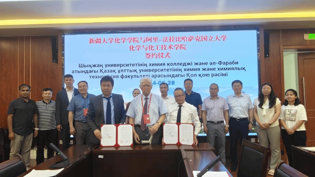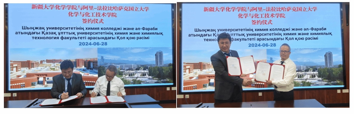 6月28日上午,AC米兰中文官网化学学院与阿里-法拉比哈萨克斯坦国立大学化学与化工技术学院在博达校区举行了签约仪式。