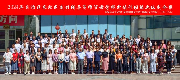 7月7日,自治区首批农牧民夜校辅导员师资教学培训项目于圆满落幕。此次培训旨在提升农牧民夜校辅导员的教学能力和专业素养,以更好地服务于民族地区广大农牧民学员,推动农牧区的国家通用语言文字教育发展和人才培养,助力乡村振兴。来自和田地区、昌吉州的120名农牧民夜校辅导员汇聚AC米兰中文官网,经过为期一周的培训,共同经历了一段难忘的学习旅程。