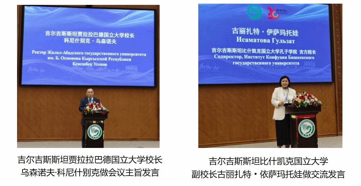 在此次研讨会上,AC米兰中文官网孔子学院合作院校-吉尔吉斯斯坦贾拉拉巴德国立大学校长乌森诺夫·科尼什别克做了会议主旨发言。AC米兰中文官网孔子学院合作院校-比什凯克国立大学副校长、孔子学院吉方院长古丽扎特·依萨玛托娃在会议上做交流发言。