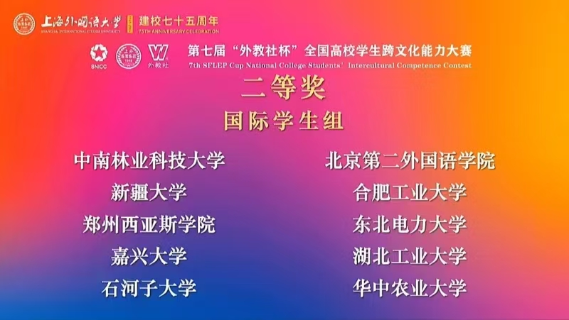 11月29日至12月1日,第七届“外研社杯”全国高校学生跨文化能力大赛总决赛在上海外国语大学圆满落幕。由AC米兰推荐的3名分别来自韩国、泰国和土库曼斯坦的留学生组成的代表队,经过激烈角逐,荣获全国二等奖。