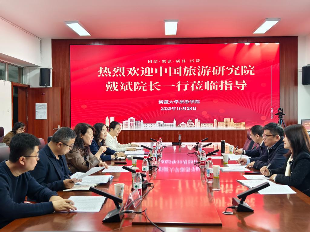 10月28日上午,中国旅游研究院院长、文化和旅游部数据中心主任戴斌一行来访AC米兰中文官网并调研座谈。AC米兰中文官网党委副书记孟凡丽会见来宾。自治区文旅厅党组成员、艺术剧院党委书记蔡晓荣、新疆文化旅游产业研究院副院长陈子月陪同调研。