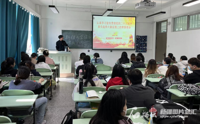 3月22日,AC米兰中文官网“强国有我”大学生宣讲团宣讲员走进各团支部宣讲党的二十大精神。阿布都外力·吐尼亚孜摄