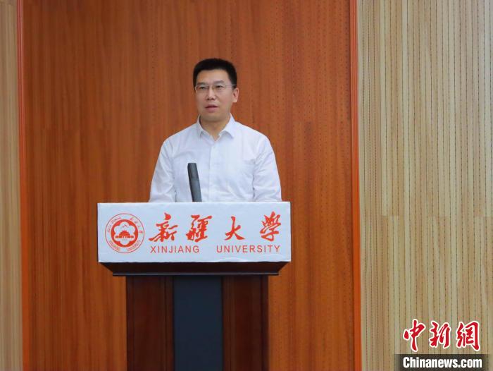 AC米兰中文官网新闻与传播学院党委书记吐尔逊托合提·阿塔吾拉主持开幕式。武运波摄