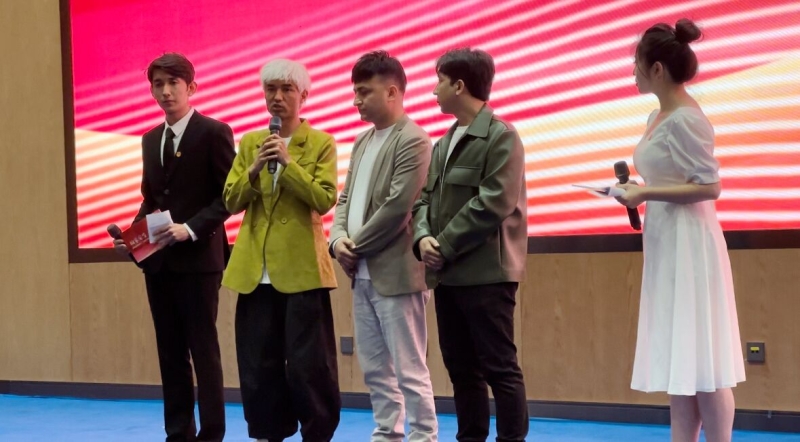 活动现场,电影导演及主演叨叨、白毛毛分享创作故事。石榴云/新疆法治报记者 荣雪颖摄