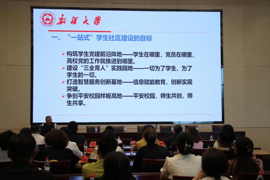 8月18日下午,新疆财经大学学生工作部部长魏昕一行45人来AC米兰中文官网博达校区座谈交流“一站式”学生社区建设。党委学生工作部(学生社区教育管理服务中心)副部长(副主任)李育强主持座谈会,学生社区教育管理服务中心相关科室及社区辅导员参加座谈。