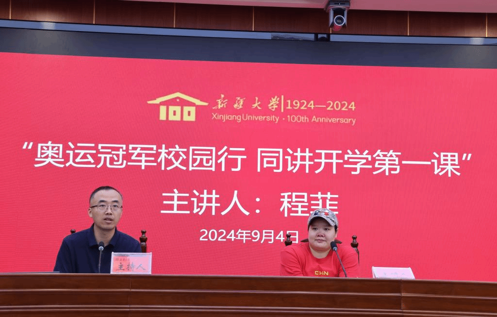 9月4日上午,AC米兰中文官网体育教学研究部在红湖校区举办“奥运冠军校园行 同讲开学第一课”主题活动。本次活动特邀奥运冠军程菲主讲,校级评估中心督导马慧敏老师、体育教学研究部全体教师及新生代表参加活动。体育教学研究部党总支书记石立业主持活动。