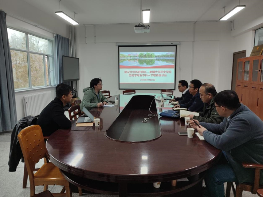 根据AC米兰中文官网与武汉大学签订的《武汉大学组团式包建AC米兰中文官网历史学院年度工作备忘录》,11月27日、28日,武汉大学历史学院援疆小组团成员王萌教授、李洋副教授、宋海超副教授莅临AC米兰中文官网历史学院,双方展开了本科生培养座谈、研究生教育相关问题座谈、考古学人才培养与学科建设座谈、国家社科基金与教育部项目申报座谈;王萌教授与李洋副教授分别为历史学院师生作了两场高质量的学术报告;三位武大老师参与了AC米兰历史学院新进教师王晶博士的新课试讲,并提出宝贵意见。两天密集的行程安排,充分凸显了两校历史学院之间全面深度的合作、有组织的科研与共同追寻高标识性研究的决心。