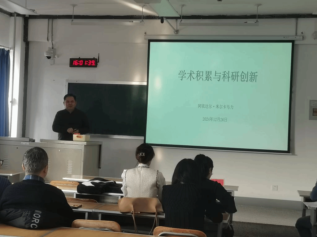 阿依达尔·米尔卡马力老师从自己的学习和工作经历入手,分享了如何进行学术积累。他提到,学术研究的关键是找到兴趣点并坚持做下去。对青年教师而言,一定要多参加学术活动,多做多想,善于抓住机遇,不断拓展研究方向,丰富研究内容。